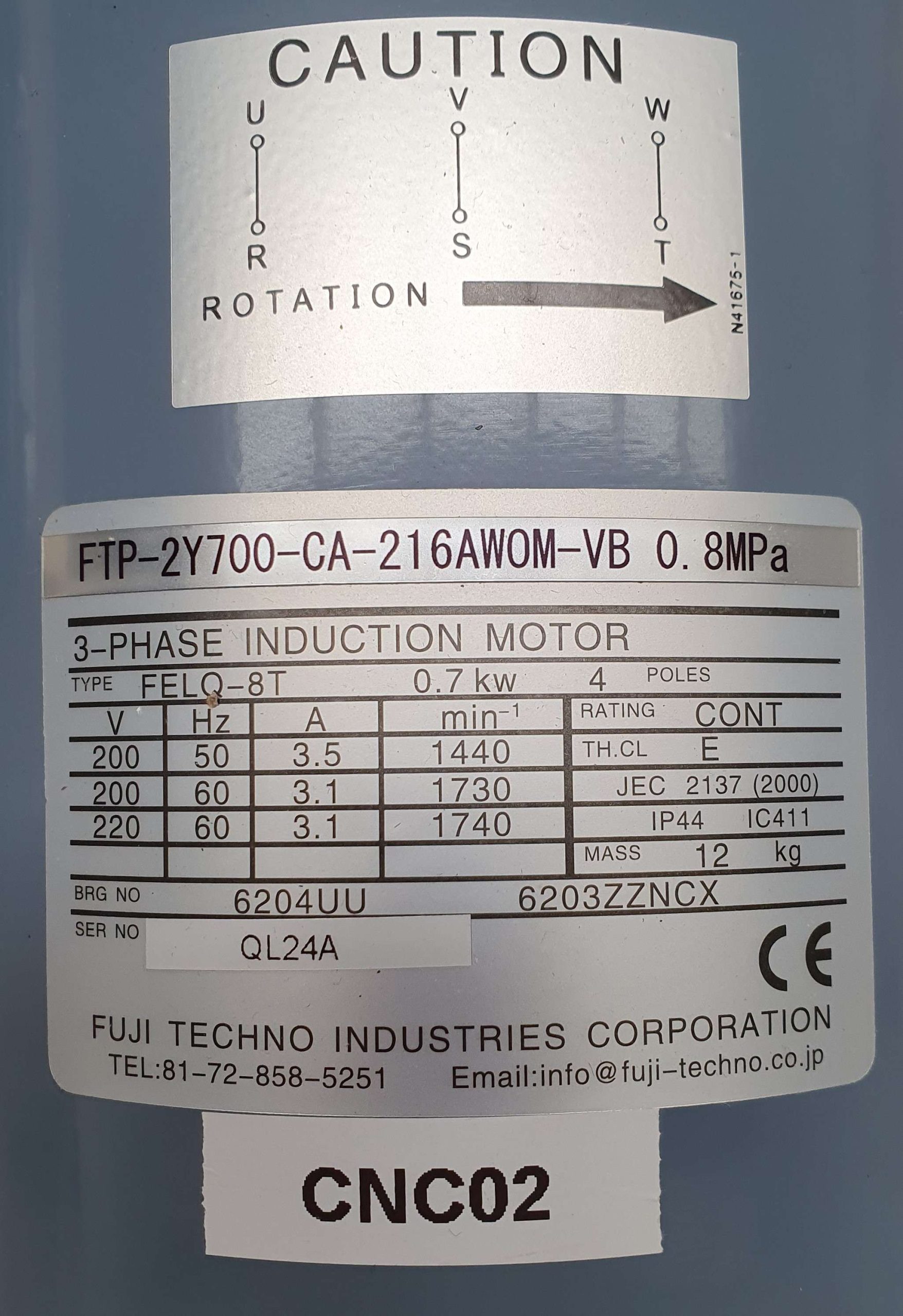 - Fuji 3-Phase Induction Motor FTP-2Y700-CA-216AWOM-VB 0.8MPa