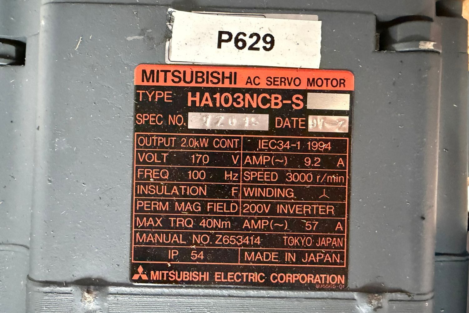 - Mazak Mitsubishi HA103NCB-S AC Servo Motor